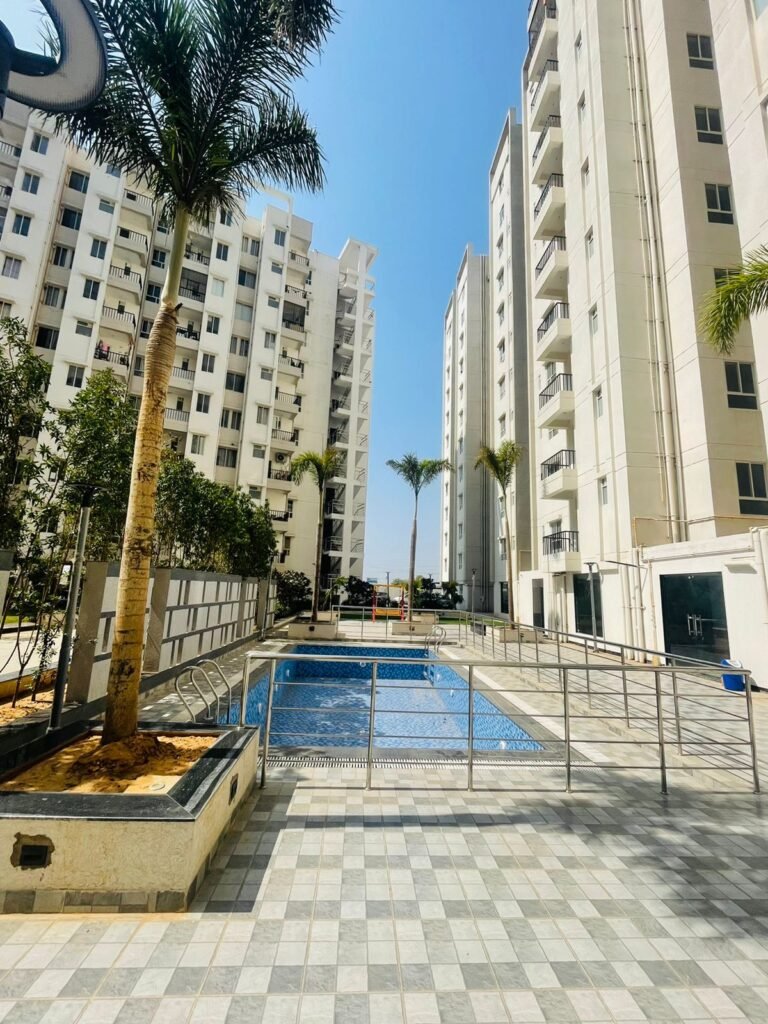Aamor offers a rooftop swimming pool, a fully equipped fitness area, mini theatre, and a zen garden designed for premium relaxation.